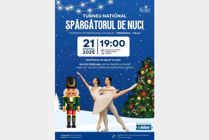 Vineri, 21 noiembrie, începând cu ora 19.00, Casa de Cultură a Sindicatelor Oradea găzduiește spectaculosul balet „Spărgătorul de nuci”. Evenimentul face parte dintr-un turneu național și vine în interpretarea Companiei Internaționale de Balet Messapica din Italia, renumită pe plan internațional.