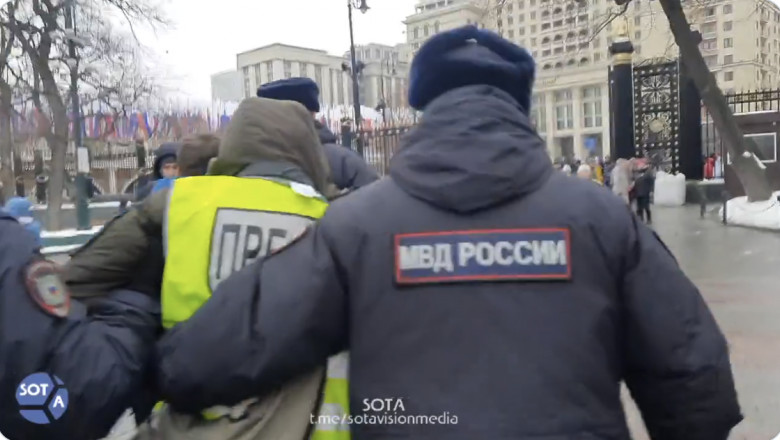 Sâmbătă, Poliţia rusă a arestat mai mulţi jurnalişti la o manifestaţie a soţilor de militari mobilizaţi în Ucraina, care cer ca aceștia să fie aduşi înapoi acasă, relatează publicaţii ruse independente. Această acțiune are loc la doi ani de la declanșarea invaziei ruse. Manifestaţiile au loc în fiecare sâmbătă, când soțiile de militari ruși mobilizați în Ucraina se adună la Mormântul Soldatului Necunoscut din Moscova, lângă zidurile Kremlinului, pentru a depune flori și a cere aducerea soților lor de pe front. Potrivit unor surse, presa a fost avertizată să nu participe la aceste manifestaţii, iar jurnaliști care au încălcat acest avertisment au fost arestați.