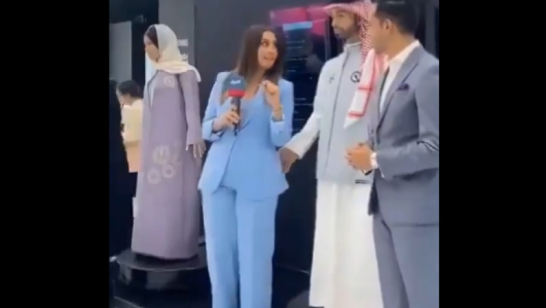Primul robot saudit "Muhammad" atinge o reporteră în timpul prezentării sale la Riad.
