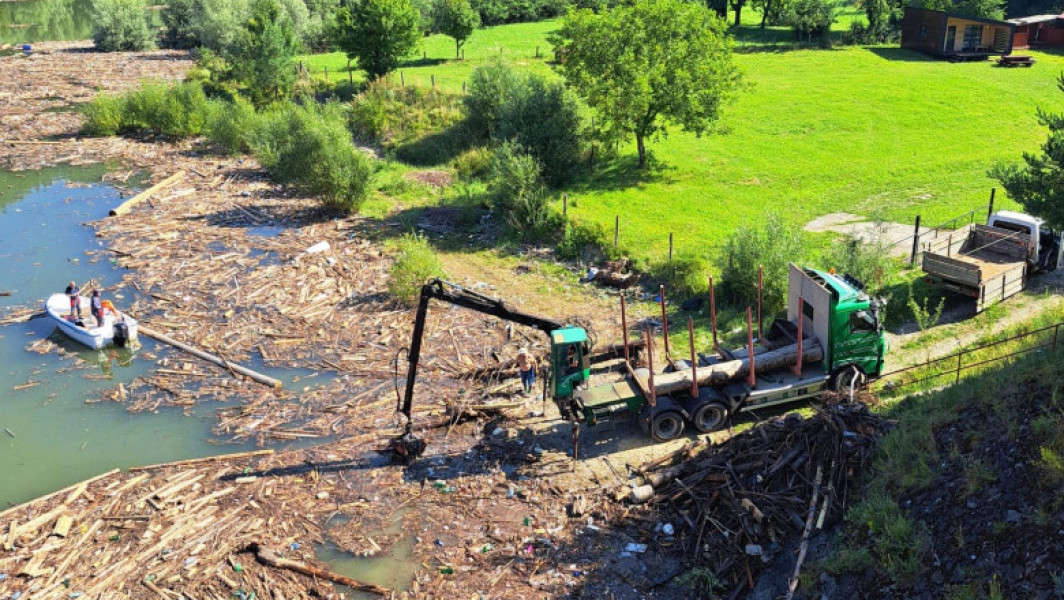 Autoritățile au început curățarea lacului de acumulare Izvorul Muntelui de sutele de tone de deșeuri aduse de viiturile de acum o săptămână